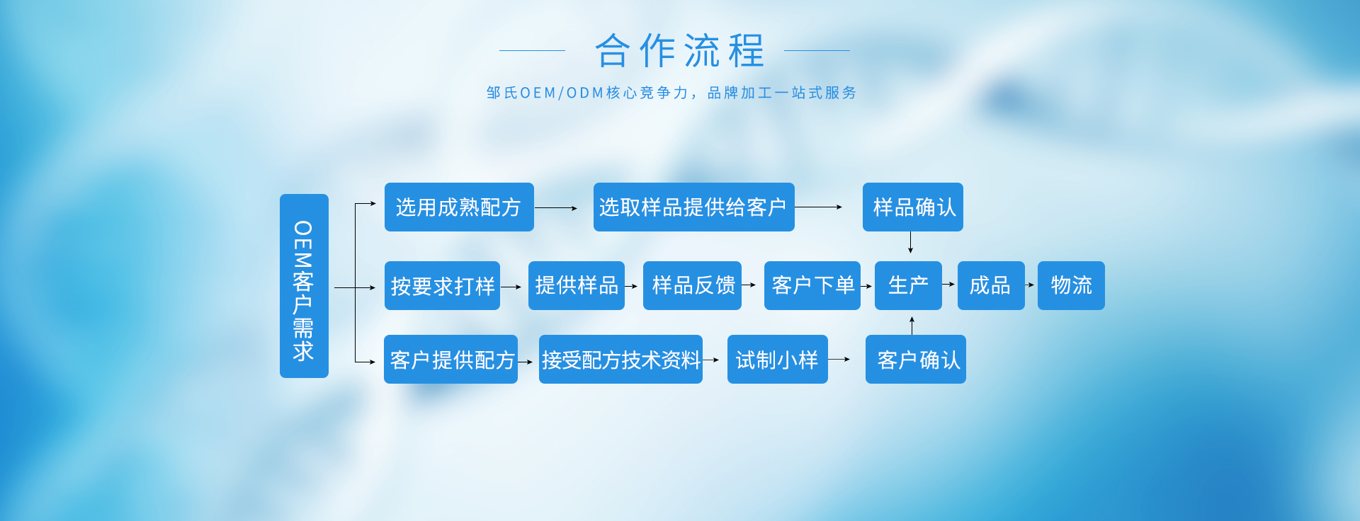 鄒氏人才濟濟,團隊精英兢兢業業,日以繼夜為客戶提供產品配方定制、賣點策劃、包裝設計、質檢、生產等一站式省心服務,打造品質至上的放心品牌。